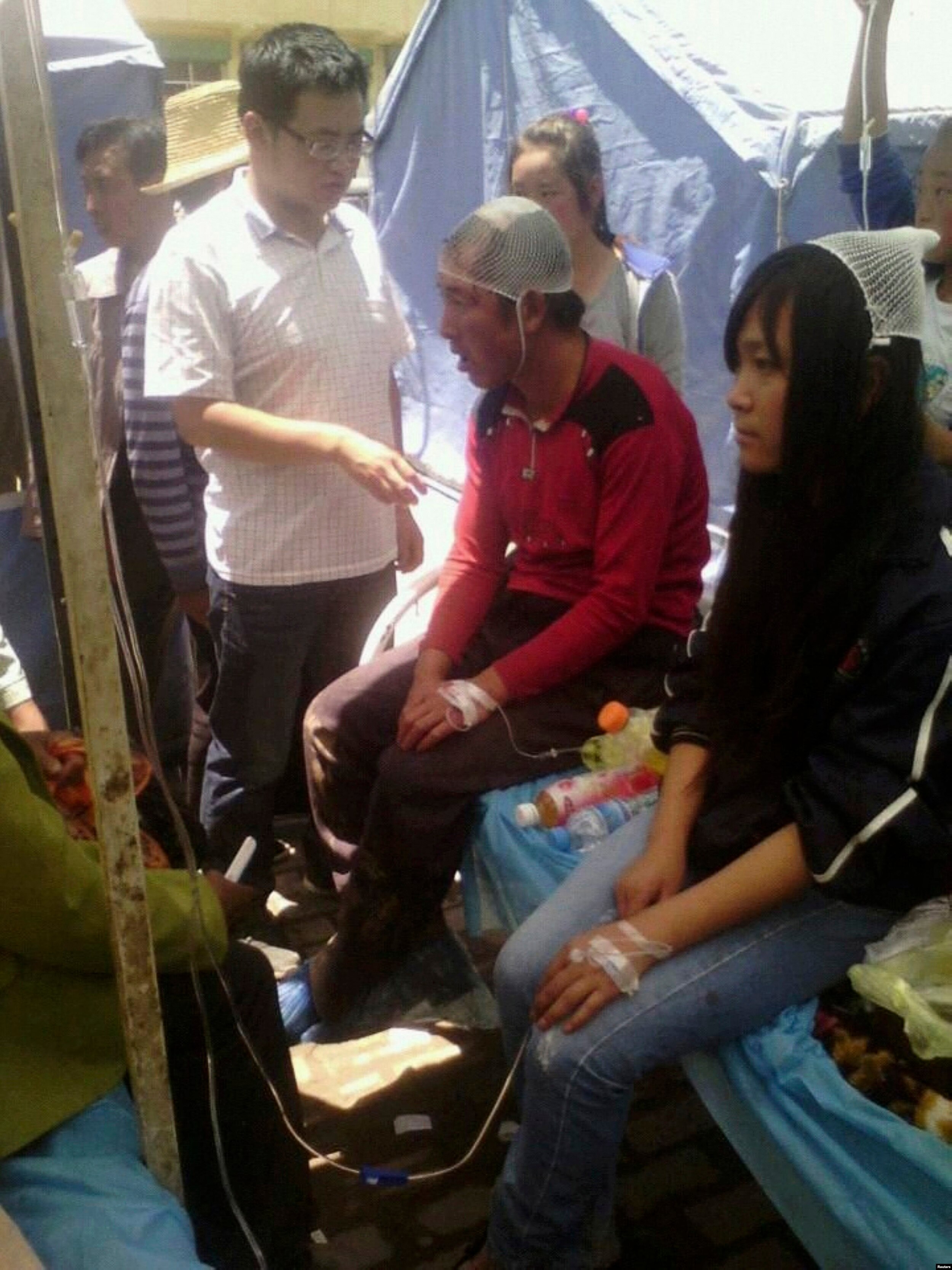 Injured people receive treatment at a clinic after an earthquake hit Dingxi, Gansu province, China, July 22, 2013.